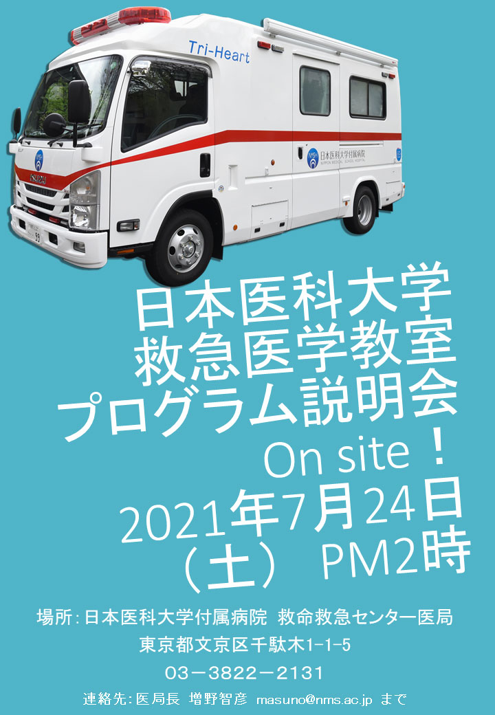 令和4年度第2回 日本医科大学 救急医学教室 プログラム説明会を開催します。